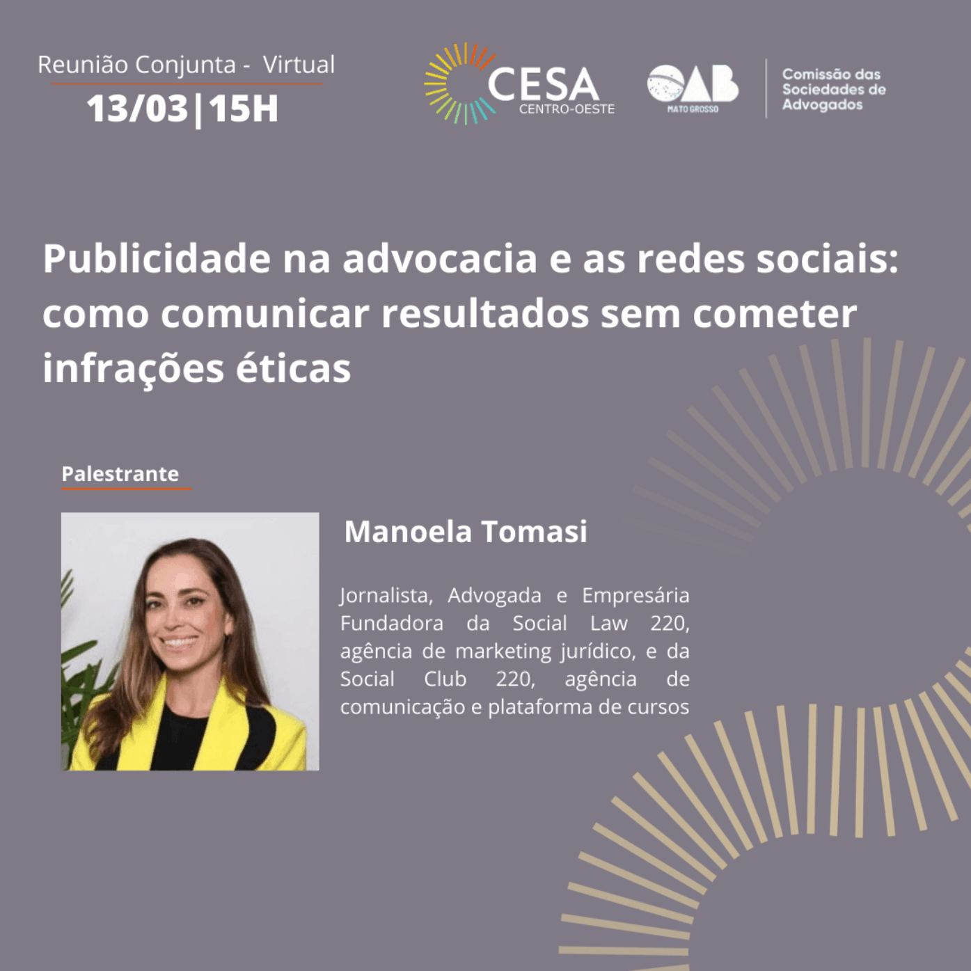 Equidade de GêneroO Selo CESA – Equidade de Gênero, tem o objetivo de incrementar iniciativas, divulgar projetos de inclusão e estabelecer metas de evolução e valorização das mulheres profissionais nas estruturas das Sociedades de Advogados, tanto na área jurídica como na área administrativa.