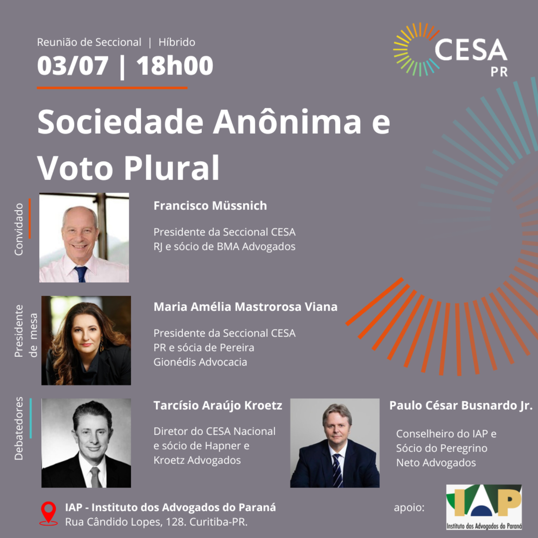 IAP - Instituto dos Advogados do Paraná | Rua Cândido Lopes, 128. Curitiba-PR, Paraná