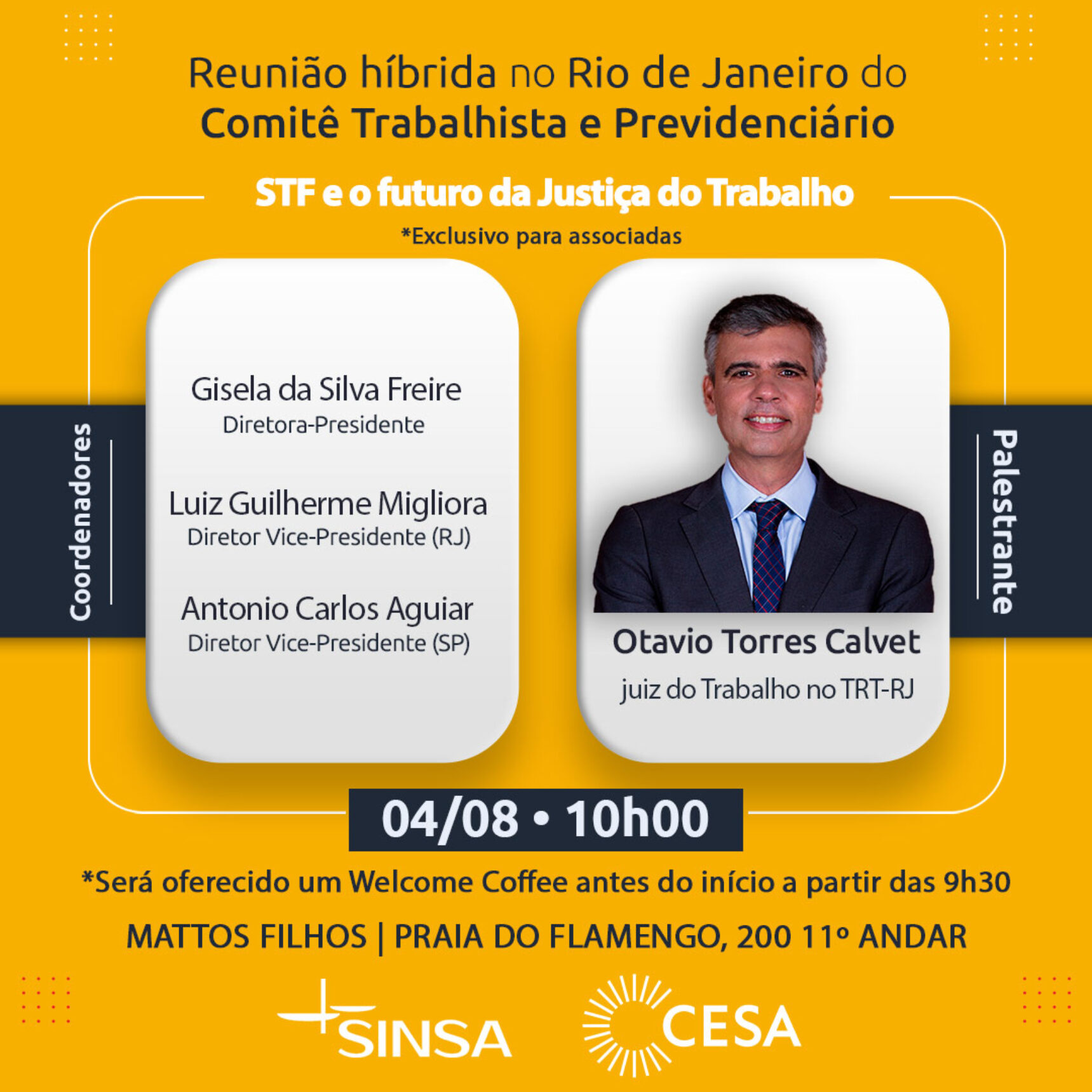 CANCELADO | Reunião Híbrida do Comitê Trabalhista e Previdenciário SINSA/CESA (RJ)